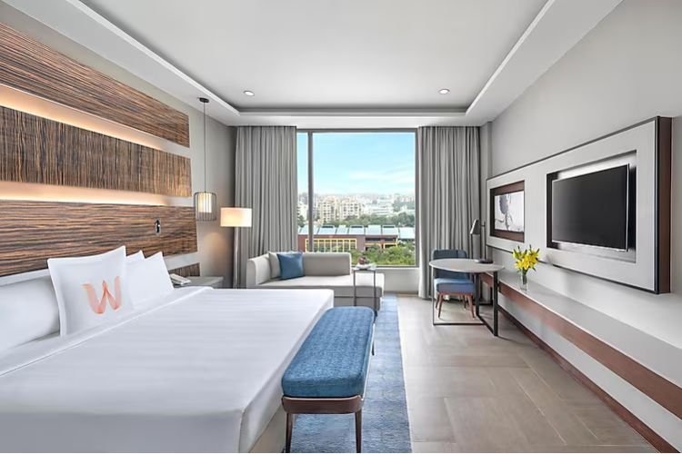 Strategically located just minutes from the Indira Gandhi International Airport and major business hubs, Welcomhotel ITC Dwarka serves as a gateway to the rich cultural tapestry of the capital. The hotel's striking architecture and lush landscaping create a serene oasis amidst the urban hustle, inviting guests to unwind in style. Upon entering, visitors are greeted by a spacious and elegantly designed lobby, adorned with stunning artworks and sophisticated decor that reflect the rich heritage of India. The hotel offers a wide array of accommodations, each thoughtfully designed with modern amenities and plush furnishings, ensuring a comfortable and restful stay.